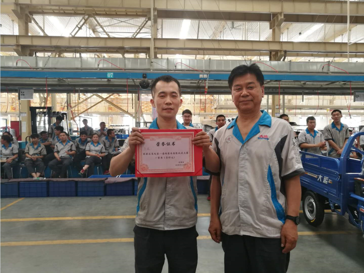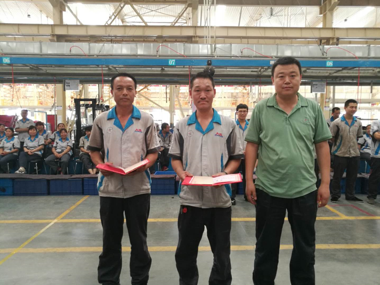 下午3点,比赛正式开始。总装处主管杨红兵致开场词,总装处调度兼线长李敏敬对参赛员工进行介绍并入场,质保处成车检验科主管代彦学宣读评分规则。