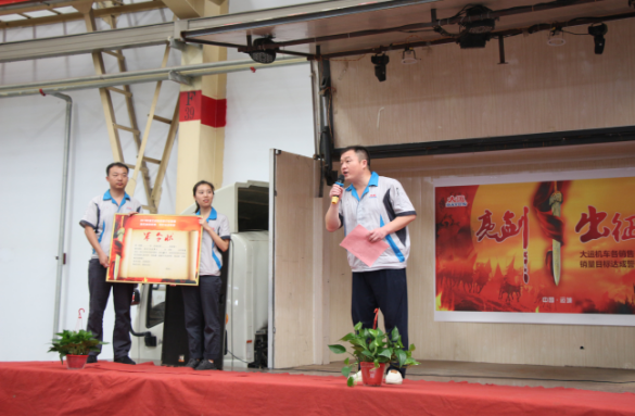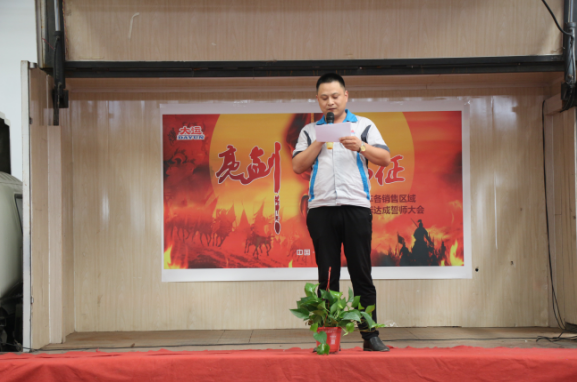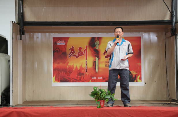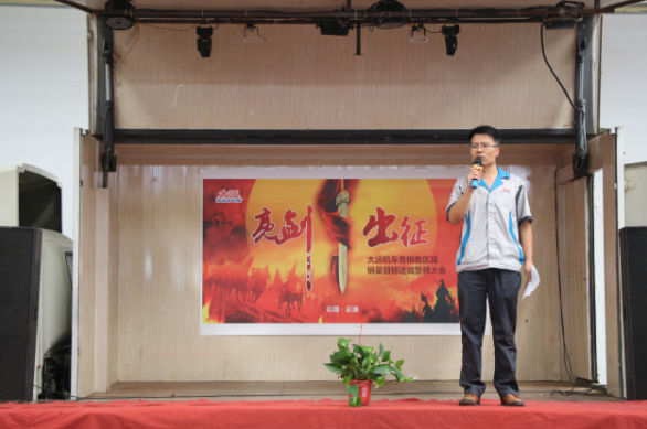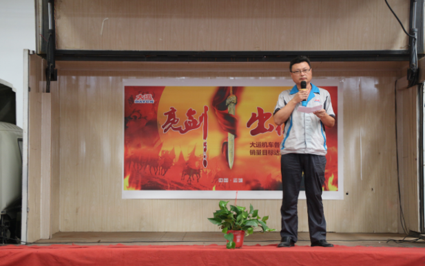 下午14:30,誓师大会在主持人的宣布中正式拉开帷幕。大运机车销售副总助理卢传祥首先上台,对本次营销精英誓师大会的开幕作了致辞,他希望我们大运机车的销售精英们,能够在9月份披荆斩棘,乘风破浪,达成目标。