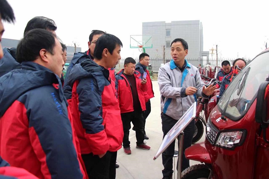 随后,各经销商朋在公司二楼会议室共同参与了“大运三轮陕北区域商务会议”。会议首先,博亚app网站总经理周总分别从公司大平台的综合实力、2019年对销售市场的保障措施以及对陕北区域的重视程度等方面向与会商家做了讲解,同时周总对陕西创天商贸有限公司“早规划、早布局、早行动”的工作思路表示认可和支持。其次,技术中心油车研发处经理张现伟、电车研发处经理符朝辉分别向与会商家讲解了公司2019年的产品规划及车辆公告情况,并表示,2019年将为市场提供符合国家公告的、具有市场竞争力的产品。