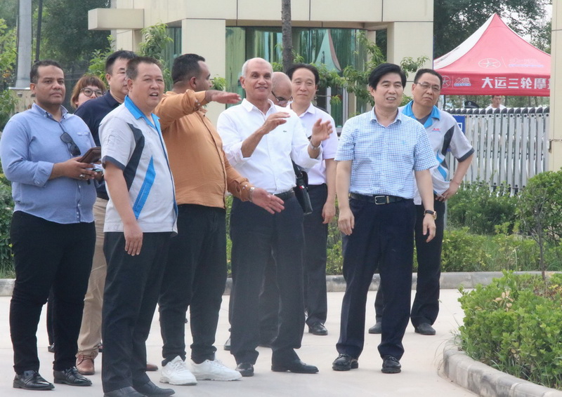 参观人员先后来到冲焊车间、涂装车间、总装车间,查看了公司三轮车生产的整个工艺流程及生产组织模式,在全方位了解公司的规模实力、研发实力、详细的产品介绍及检验流程后,高度赞扬了公司过硬的产品质量、先进的环保设施、完善的售后服务模式,并感谢我公司热情周到的接待,对公司节能环保理念、自动化工艺流程、丰富的产品结构及严格的质量管控留下了深刻印象,表示将在埃及广泛宣传“大运”品牌,大力支持博亚app网站埃及项目的发展。