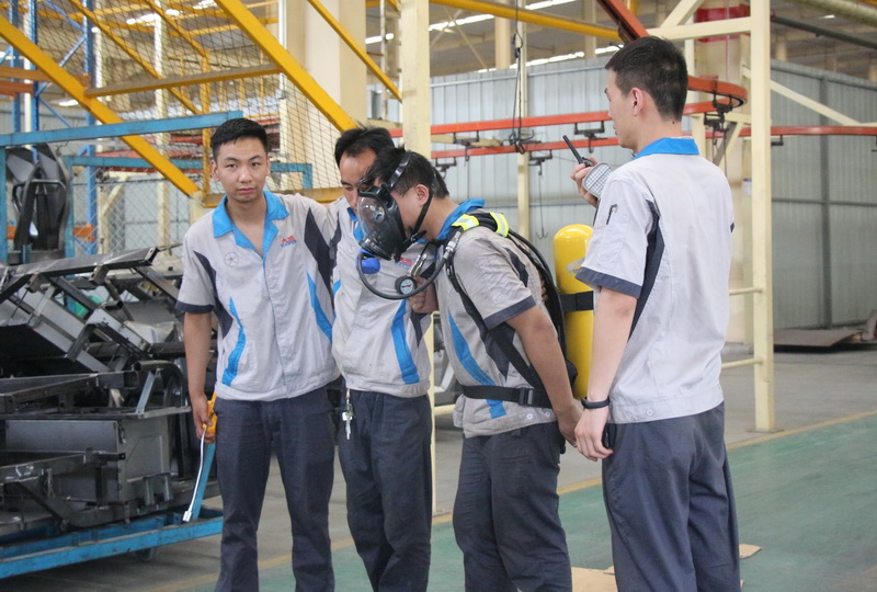 随着总指挥一声令下,演练正式开始,演练假设涂装车间油漆烘干室天然气管道及法兰泄漏,有人因未佩戴防护用品中毒晕倒,同时发生火灾,发现险情后现场员工立即报告相关领导并实施紧急救治。现场指挥接到险情报告后,立即启动综合应急演练预案,组织应急处置组、事故抢险组、消防保卫组、通讯联络组、环境监测及设备抢修组、物资供应组赶赴事故现场,进行紧急昏迷人员抢救、灭火救援及现场工作人员疏散。