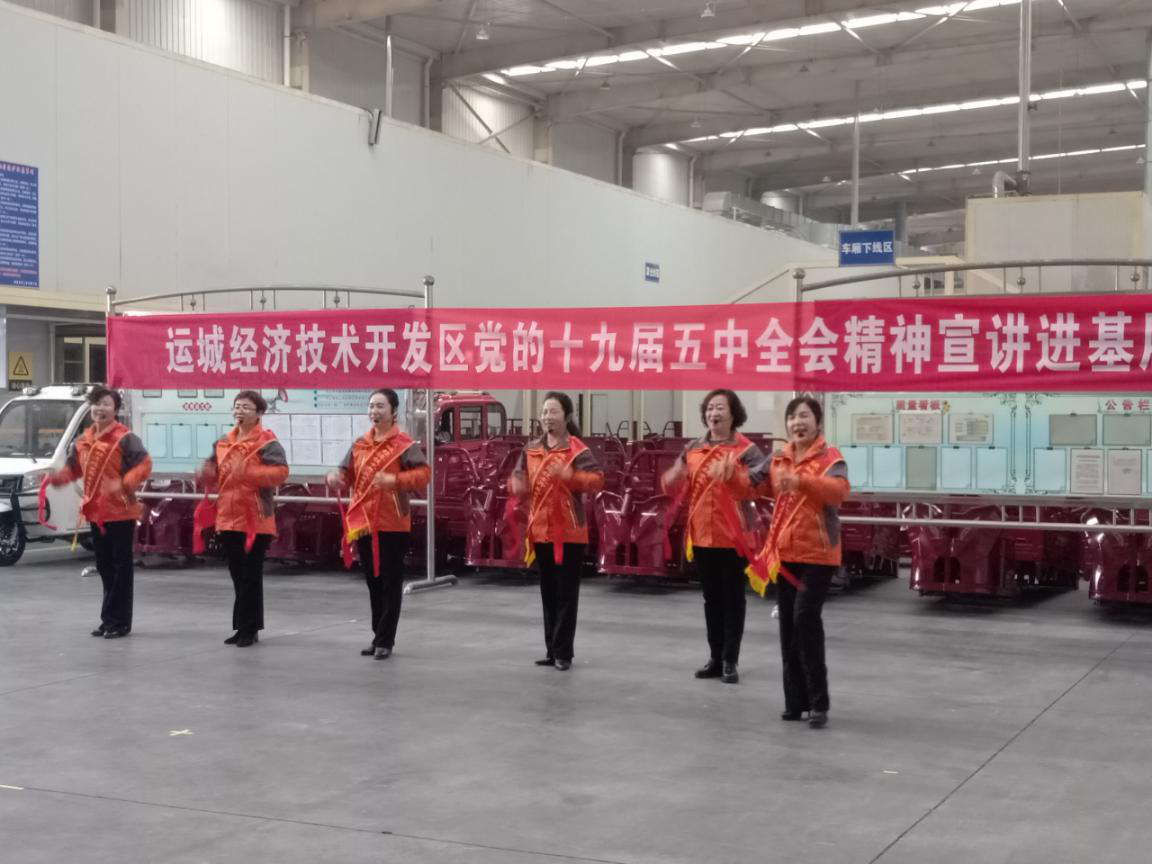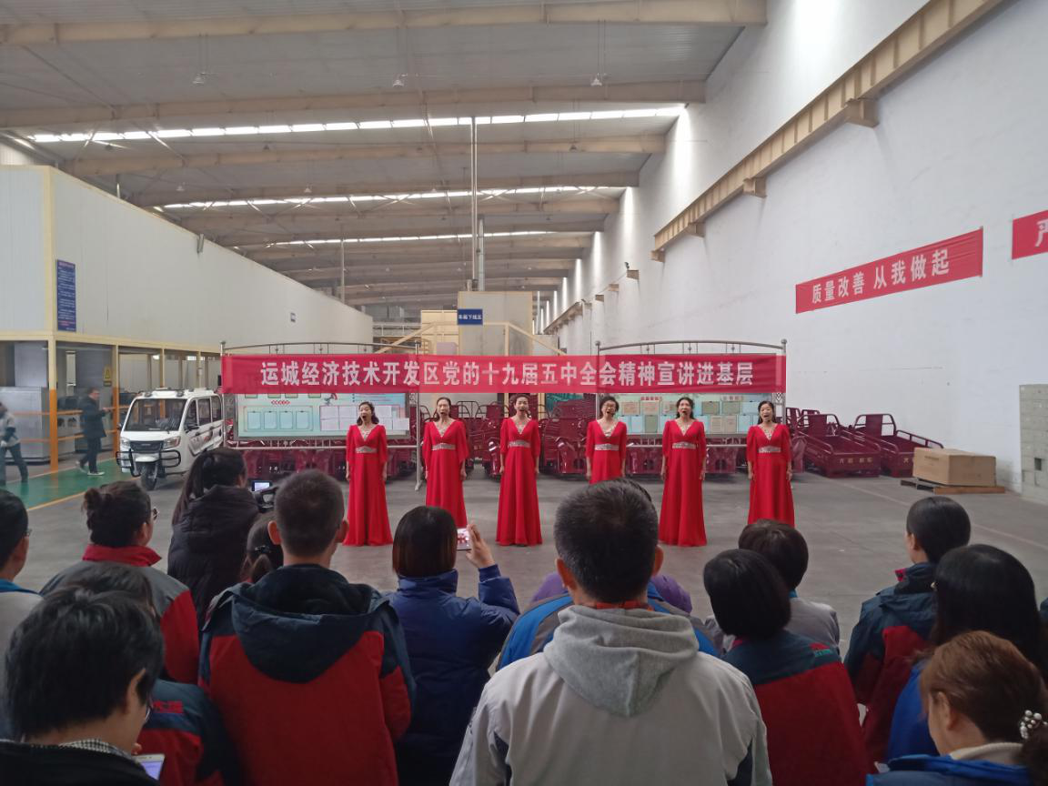 12月11日,运城经济技术开发区总工会来到大运机车有限公司,开展党的十九届五中全会精神宣讲。为引领广大职工群众听党话、跟党走,进一步丰富职工的文化生活,此次通过快板、合唱、现场提问等大家喜闻乐见的方式开展。